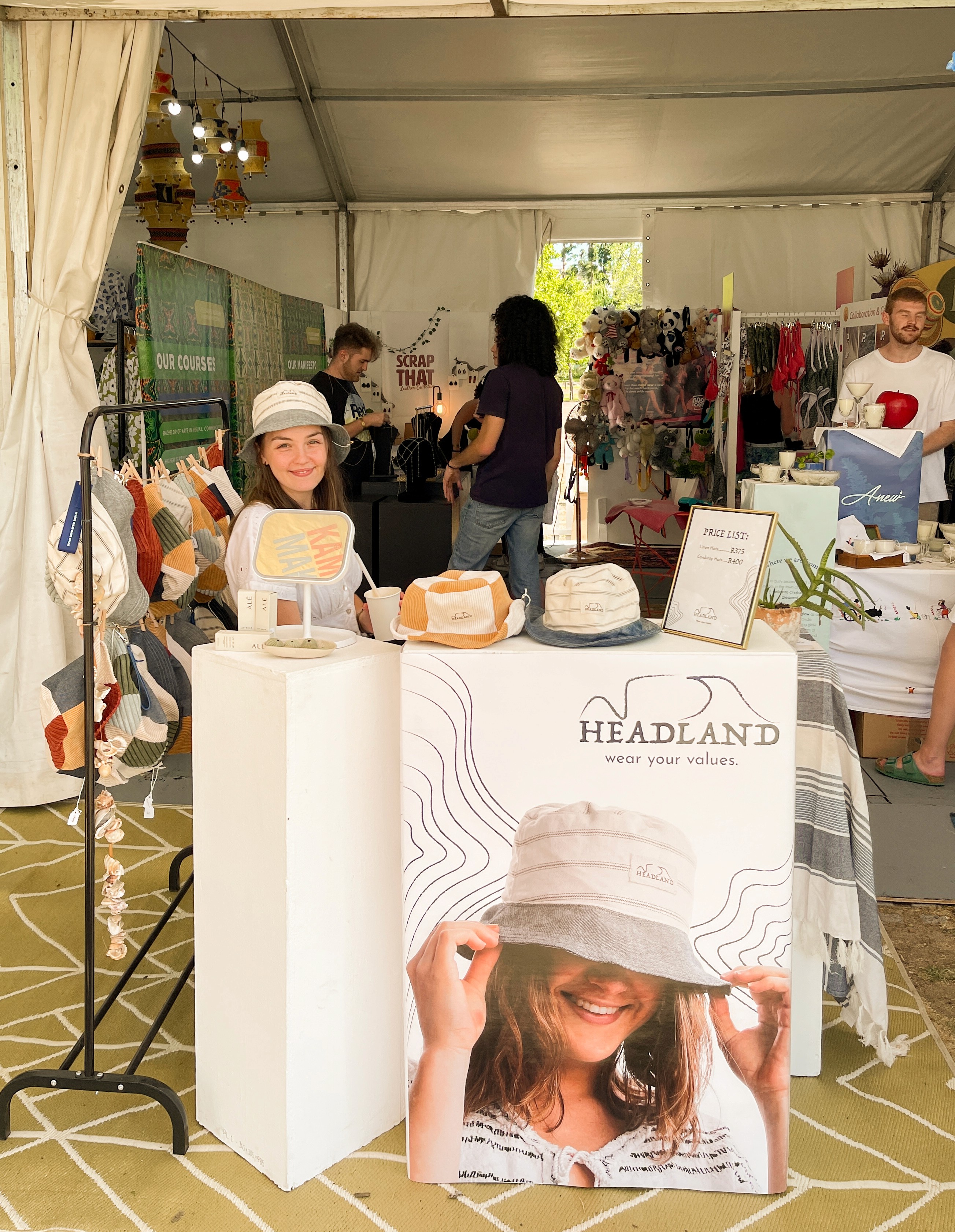 For my third and final year of university, I participated in a group project called Headland. We were tasked with launching a business and developing a product to be sold at the Kamers Market. Our group aimed to create a sustainable, high quality brand, which led to the creation of Headland bucket hats.